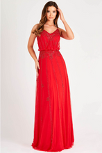 The Keeva maxi is a beautiful detailed Blouson-style maxi dress with a beautiful sheer overlay and spaghetti straps that can be adjusted for the perfect fit. This unique occasion-wear dress is a must-have with its intricately hand-embellishment and gorgeous silhouette for a flattering look, making it beautifully elegant and easy to wear.