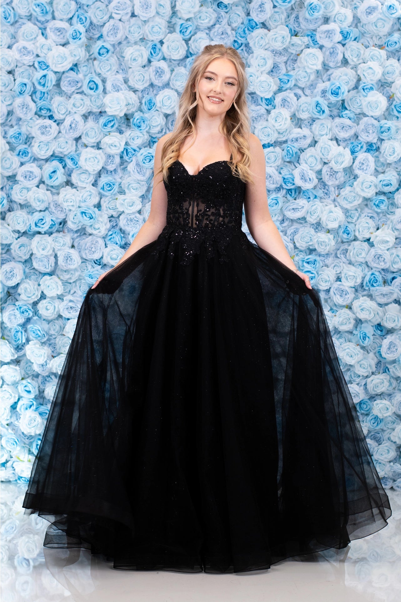 This stunning A-line dress from Nell Devlin screams prom! Perfect for all shapes and sizes with its flowing tulle skirt and fitted corset style top. The elegant silhouette makes it the perfect statement dress for prom, featuring a gorgeous sweetheart neckline and corset style back.